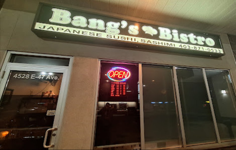 Le service est décrit comme étant très serviable et efficace. Le restaurant est très propre et bien entretenue. Le mets le plus apprécié est souvent le spiced mango prawn et le dessert favori, le deep fried ice cream. Le restaurant japonais Bang's Bistro est réputé pour son ambiance décontractée et pour être un choix sûr pour les amateurs de mets japonais dans la région de Rocky Mountain House.